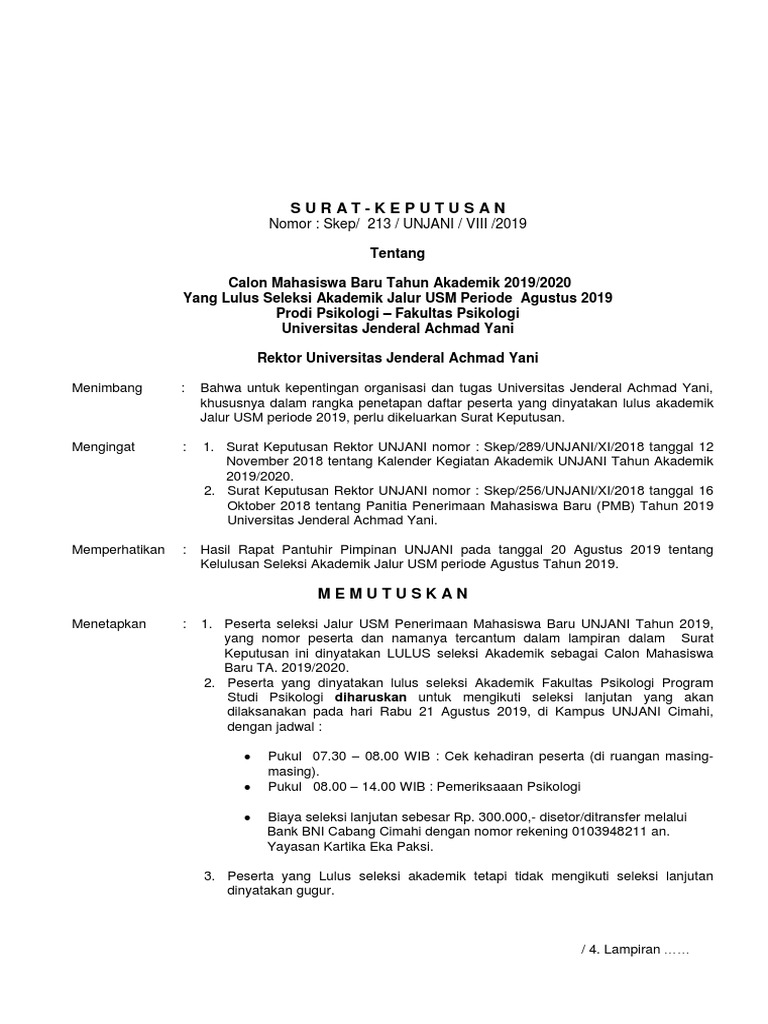 Dan unjani termasuk murah deh dibandingin sama swasta di jakarta, apalagi kalau lewat jalur pmdk. Pada tahun akademik 2015/2016 unjani dimungkinkan membuka penerimaan mahasiswa baru melalui 4 (empat) jalur. Kalo masih ada aku boleh minta ga tolong kirim ke wkartika73@gmail.com makasih banyak yah. info surat keputusan final kelulusan periode juli 2015 fk kedokteran & fk psikologi jalur usm. So please help us by uploading 1 new document or like us to download