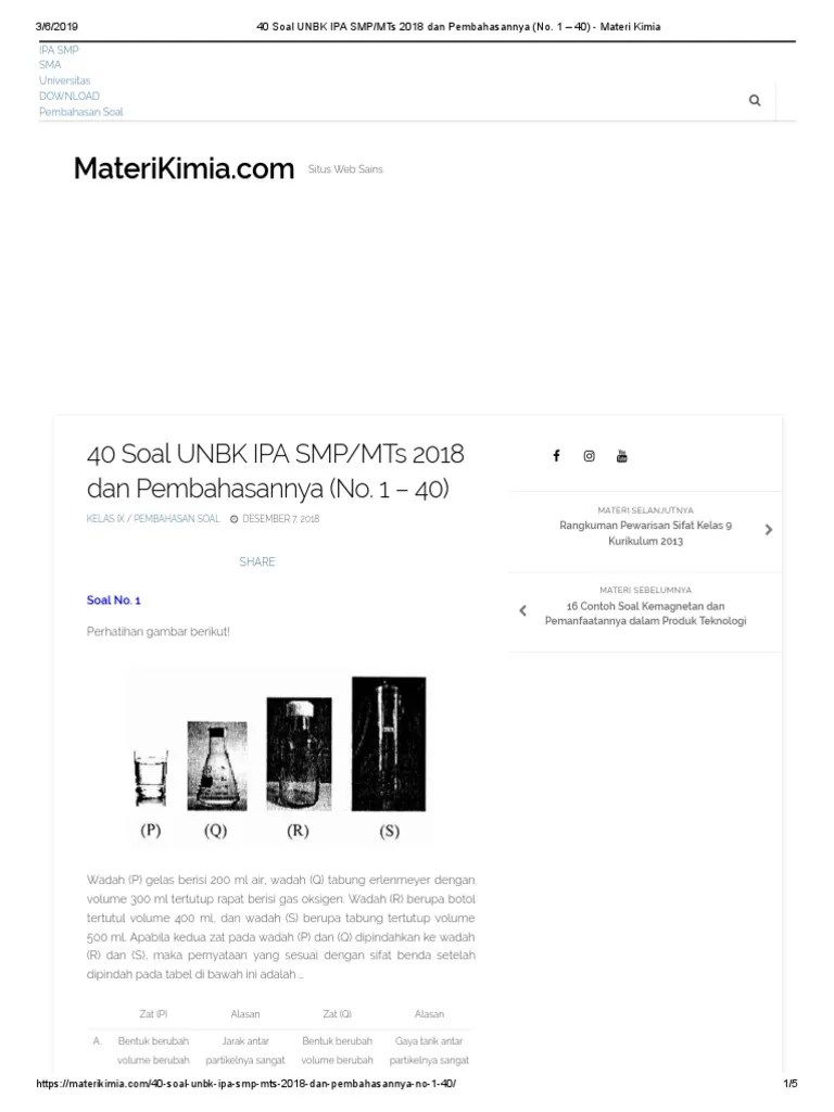 Pembahasan Soal Ipa Un Smp 2019 - Soal Ipa Un Smp 2019 P4 Www Sudutbaca Com Pdf : Dari hasil penelitiannya, sifat gas yang benar adalah….